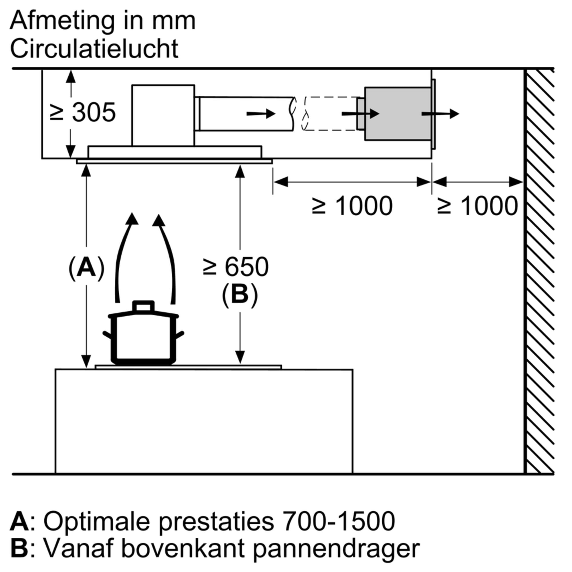 - Voor recirculatie is een cleanAir koolfilter unit (optioneel accessoire) nodig