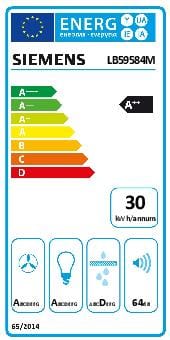 De Siemens LB59584M iQ700 is een vlakscherm afzuigkap van 52.0 cm breed. Het apparaat past in een minimale uitsparing van 49.6 cm breed. Het apparaat maakt 64 dB(A) re 1 pW geluid